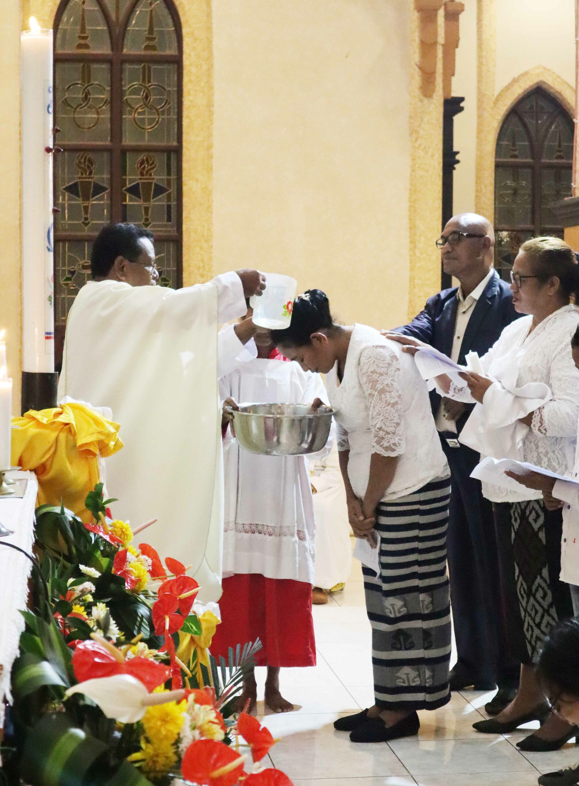 Perayaan pembabtisan dipimpin langsung oleh RD. Vinsen Keytimu selaku pastor paroki MBC Bajawa. Dalam arahan singkat setelah upacara pembabtisan selesai dilaksanakan, Romo Vinsen mengajak umat Paroki MBC untuk menerima umat yang baru dibabtis ini dengan suka cita.